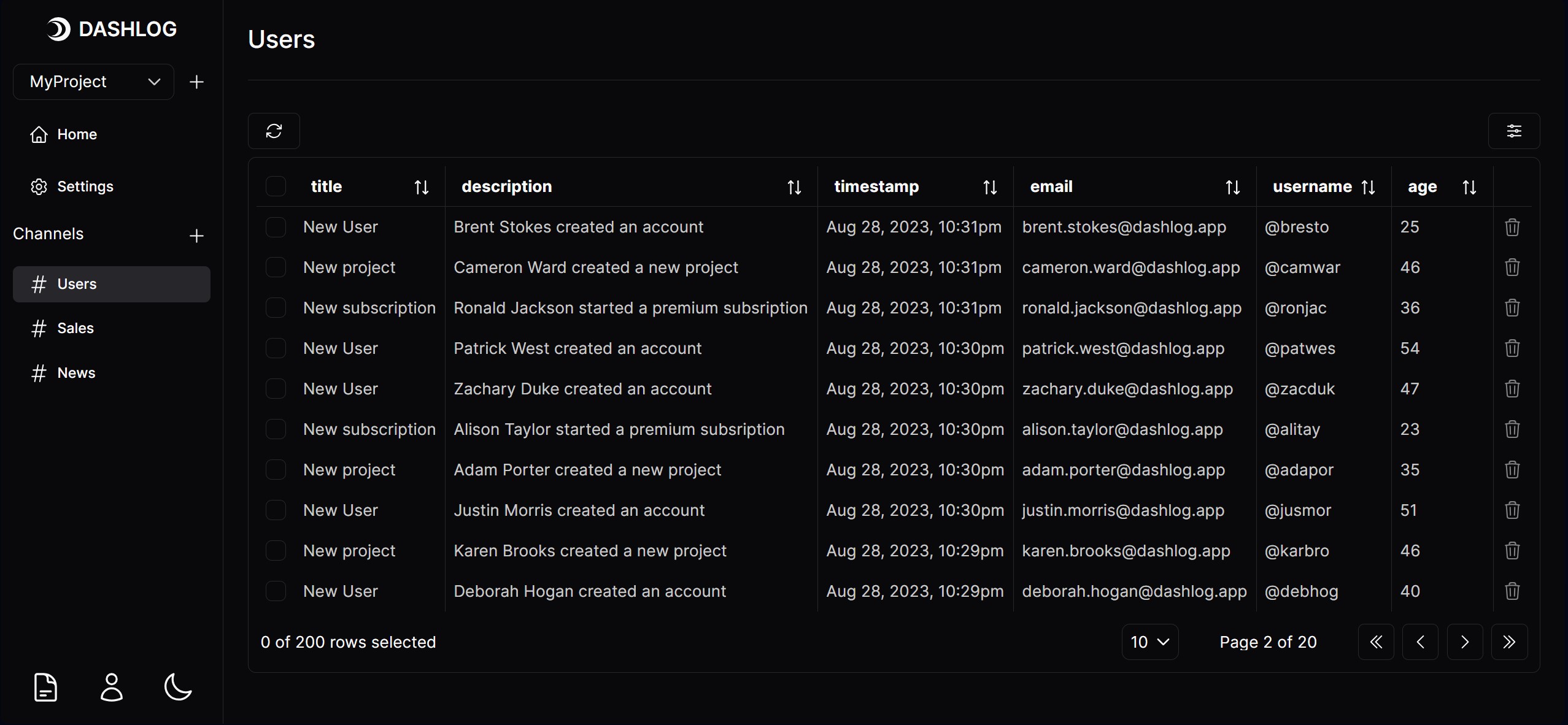 Organize your logs across various channels and visualize them directly within the application. Maintain a comprehensive record of all occurring events.
